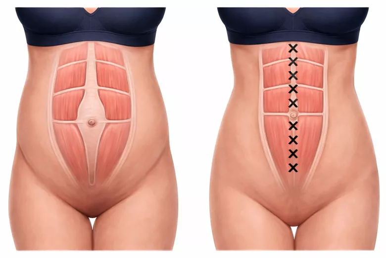 Es la separación de los músculos rectos del abdomen en la línea media, frecuente tras embarazos o cambios importantes de peso.